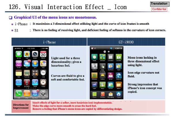 Nelle 132 pagine del documento (PDF) vengono analizzati numerosi dettagli del Galaxy S prima edizione e dell’iPhone, con un confronto che secondo gli ingegneri del gruppo sudcoreano vede il Melafonino vincitore sotto ogni aspetto. L’invito è dunque quello a seguire le orme della mela morsicata, realizzando un’interfaccia grafica che possa somigliare a quella di iOS per essere semplice ed usabile, arricchendo il dispositivo di nuove app native ed in generale allineandosi con le strategie progettuali di Cupertino.