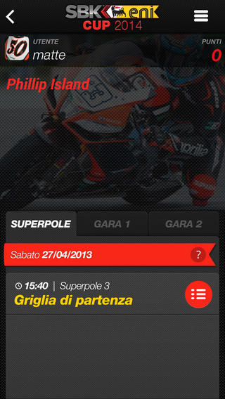 Per la Superpole di ogni evento pronostica la “Griglia di Partenza”. Per ogni posizione esatta dei piloti ti verranno assegnati 100 punti.