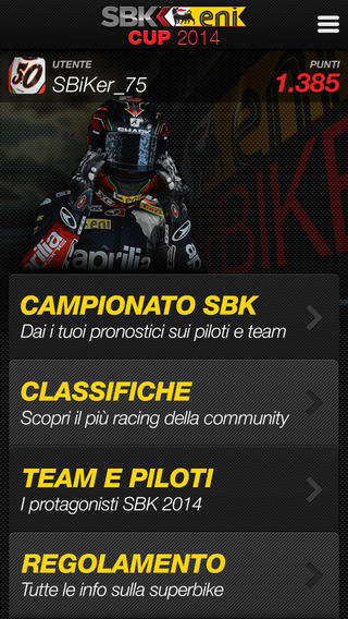 Il nome dell’app è “SBK eni Cup 2014“: si tratta dell’app ufficiale messa a disposizione da Eni per poter giocare, e vincere, una giornata da sogno nel mondo della Superbike. Eni, attuale sponsor ufficiale della competizione e fornitore di carburante per oltre l’80% dei piloti in gara, apre infatti le porte del paddock agli utenti che si dimostreranno più abili e competenti nello stilare i pronostici circuito per circuito, gara per gara, Superpole per Superpole. Partecipare è facile e gratuito: si scarica l’app (App Store o Google Play), si effettua la registrazione e quindi non resta che dare il via alle scommesse.