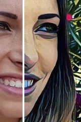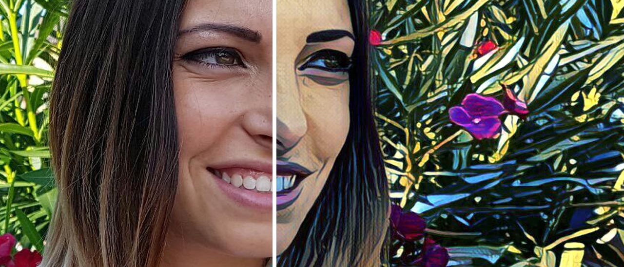 Uno stile quasi cartoonesco per Candy, forse poco consigliato per i ritratti poiché rischia di deformare i tratti somatici. Le porzioni dell’immagine con tinta uniforme assumono un convincente effetto tela.