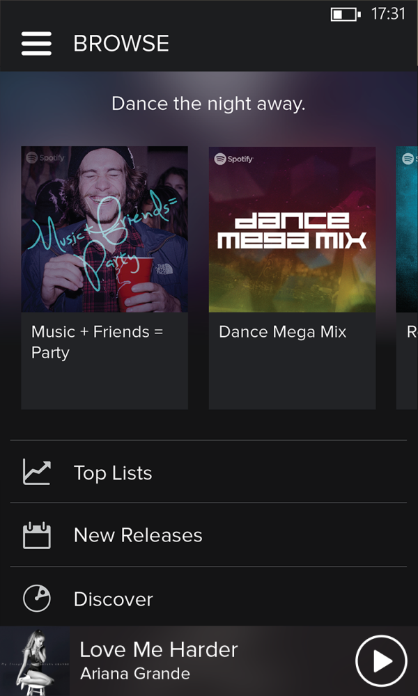 La funzionalità Browse (Naviga) è stata migliorata per mostrare contenuti più rilevanti, in base alla posizione geografica dell’utente. L’azienda afferma che la ricerca della musica più adatta ad ogni momento della giornata è diventata più semplice. Spotify 5.0 per Windows Phone è gratuita e consente di ascoltare i brani in modalità shuffle. Le funzioni avanzate e la rimozione della pubblicità si ottengono con l’abbonamento Premium.