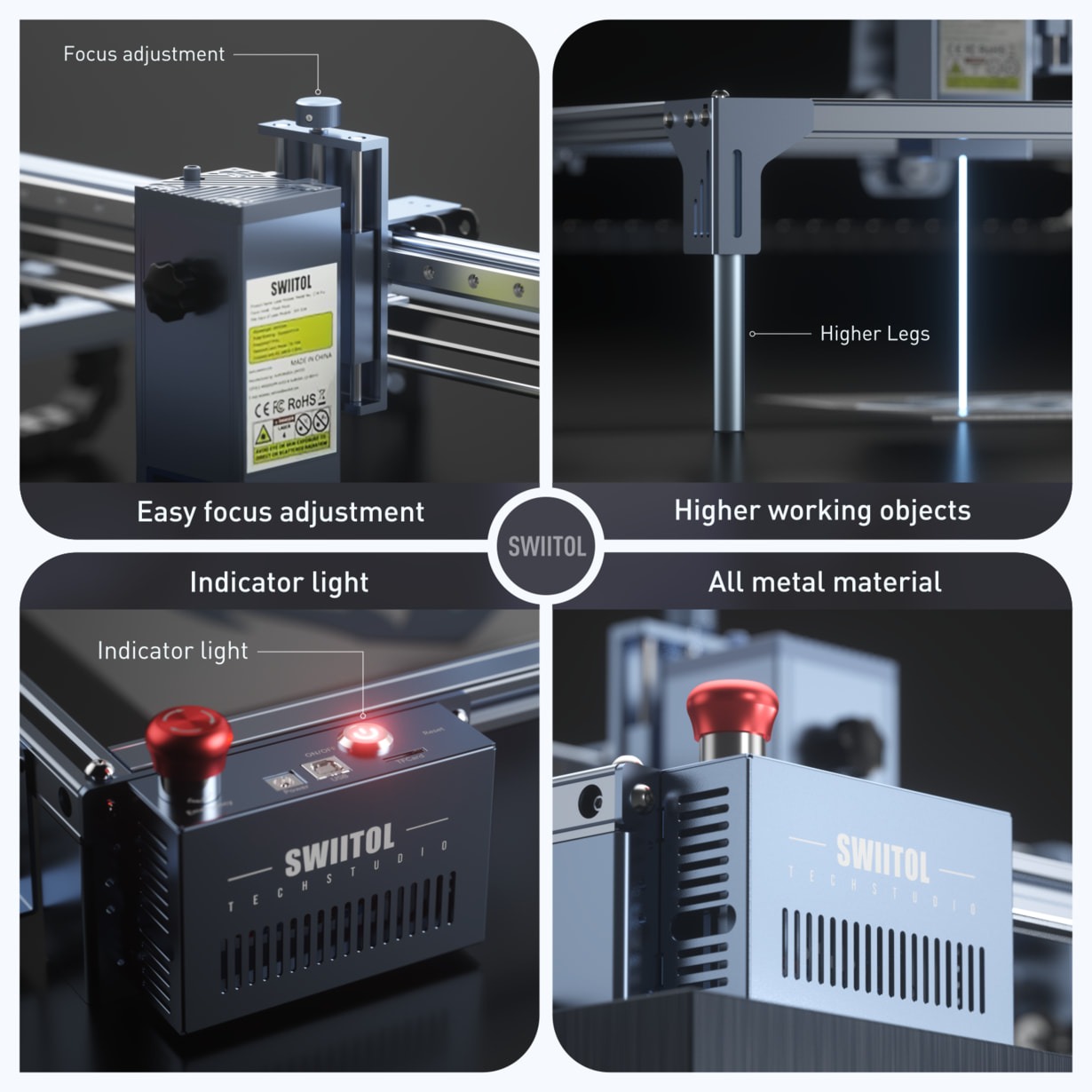 Questo dispositivo è dotato di funzioni avanzate che ne facilitano l’utilizzo, come il posizionamento del laser in tempo reale, che consente agli utenti di previsualizzare l’area di incisione per una maggiore precisione. Inoltre, il Swiitol C24 Pro include un sistema di protezione per gli occhi, che riduce il rischio di danni causati dalla luce laser durante l’uso.