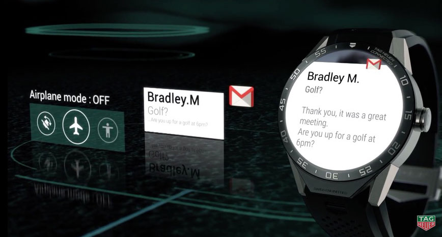 All’evento di lancio, organizzato a New York, erano presenti Jean-Claude Biver, CEO di Tag Heuer e President della divisione Watches di LVMH, Brian Krzanich, CEO di Intel, e David Singleton, Vice Presidente del gruppo Engineering (Android) di Google. Leggendo questi nomi si possono già intuire alcune caratteristiche dello smartwatch. La cassa del Tag Heuer Connected è completamente in titanio, così come la cornice intorno al display circolare da 1,5 pollici (360×360 pixel, 240 ppi) e il pulsante laterale. Il cinturino, disponibile in sette colori (nero, verde, blu, arancione, rosso, giallo e bianco), è invece in gomma vulcanizzata.