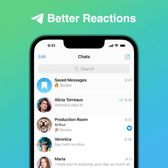 Altra gradita novità riguarda le rezioni, ovverosia le emoji animate e interattive utilizzate dagli utenti nelle chat per esprimersi velocemente senza bisogno di scrivere qualcosa. Oltre ad aggiungerne cinque, Telegram 8.5 ne migliora le animazioni in generale. Inoltre si potranno ingrandire tenendo premuto sull’immagine prima di spedirle e attivare un effetto a schermo intero. Come le emoji interattive, le reazioni ora sono sincronizzate, quindi i destinatari vedranno le animazioni in tempo reale. In più, essendo considerate al pari delle risposte scritte, hanno lo stato di lettura.
