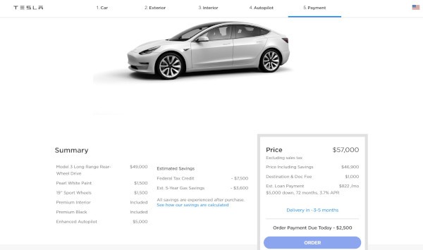 Tesla ha aperto gli ordini della Model 3 a tutti coloro che abitano in Nord America e in Canada. Questo significa che da adesso in poi non sarà più necessario prenotare l’acquisto di questo modello di auto elettrica lasciando una caparra di 1000 dollari perché si potrà procedere direttamente con l’ordine definitivo. La cosa più interessante, però, è che la società di Elon Musk ha aperto il configuratore della Model 3 a tutti. Dunque, anche gli europei potranno dare una sbirciatina al sistema di configurazione e di prenotazione della piccola auto elettrica di casa Tesla.