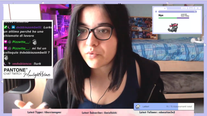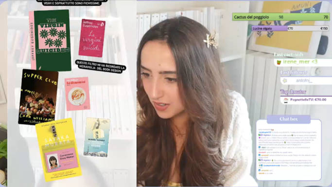 - Julie Demar – 2.7k: Giulia ha recentemente aperto un canale Twitch dove, nella categoria Just Chatting, crea contenuti che gravitano intorno alla sua reading list e ai suoi libri preferiti, dando consigli di lettura a una community che le è molto affezionata.