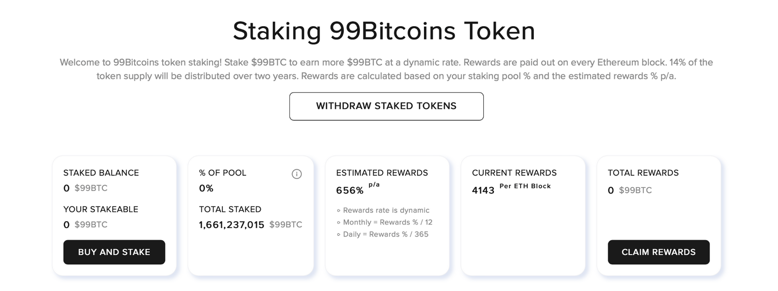 Quindi, anche senza un apprezzamento del prezzo, lo staking di 99Bitcoins potrebbe generare enormi guadagni.