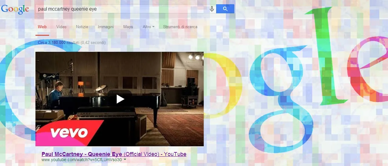 Cercando il nome di un musicista o di una band, seguito dal titolo di un brano, i video di YouTube compaiono in cima alle SERP di Google