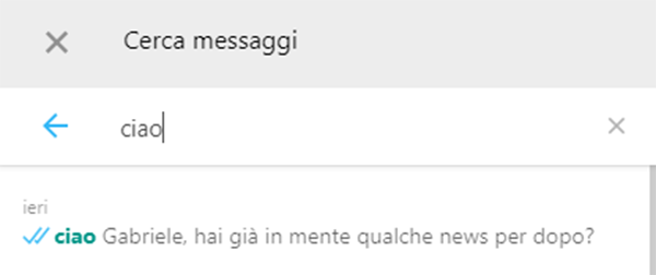 Il gioco è fatto, in questo modo si risparmia tempo perché basta scrivere un termine per trovare una parte di conversazione piuttosto che scorrere tutta la chat.