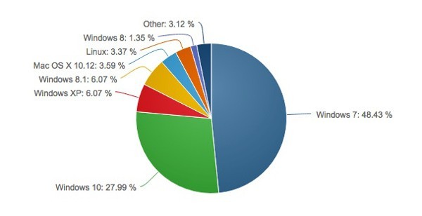 Inoltre, nel 2020 terminerà il supporto di questo sistema operativo e quindi per allora non solo le aziende ma anche i piccoli uffici, professionisti ed utenti comuni dovranno essere passati a Windows 10. Rimane sostanzialmente stabile l’inossidabile Windows XP, segno che questa fetta di mercato rappresenta probabilmente un certo numero di vecchi PC non aggiornabili. Ancora in calo l’accoppiata Windows 8.1/Windows 8. Ai sistemi operativi non Windows rimangono, invece, solamente le briciole con Linux e macOS 10.12 che si dividono equamente poco più del 6% del mercato. Se, tuttavia, Microsoft non può che sorridere per lo stato di salute di Windows 10, le cose continuano ad andare non troppo bene per Edge, il nuovo browser della casa di Redmond.