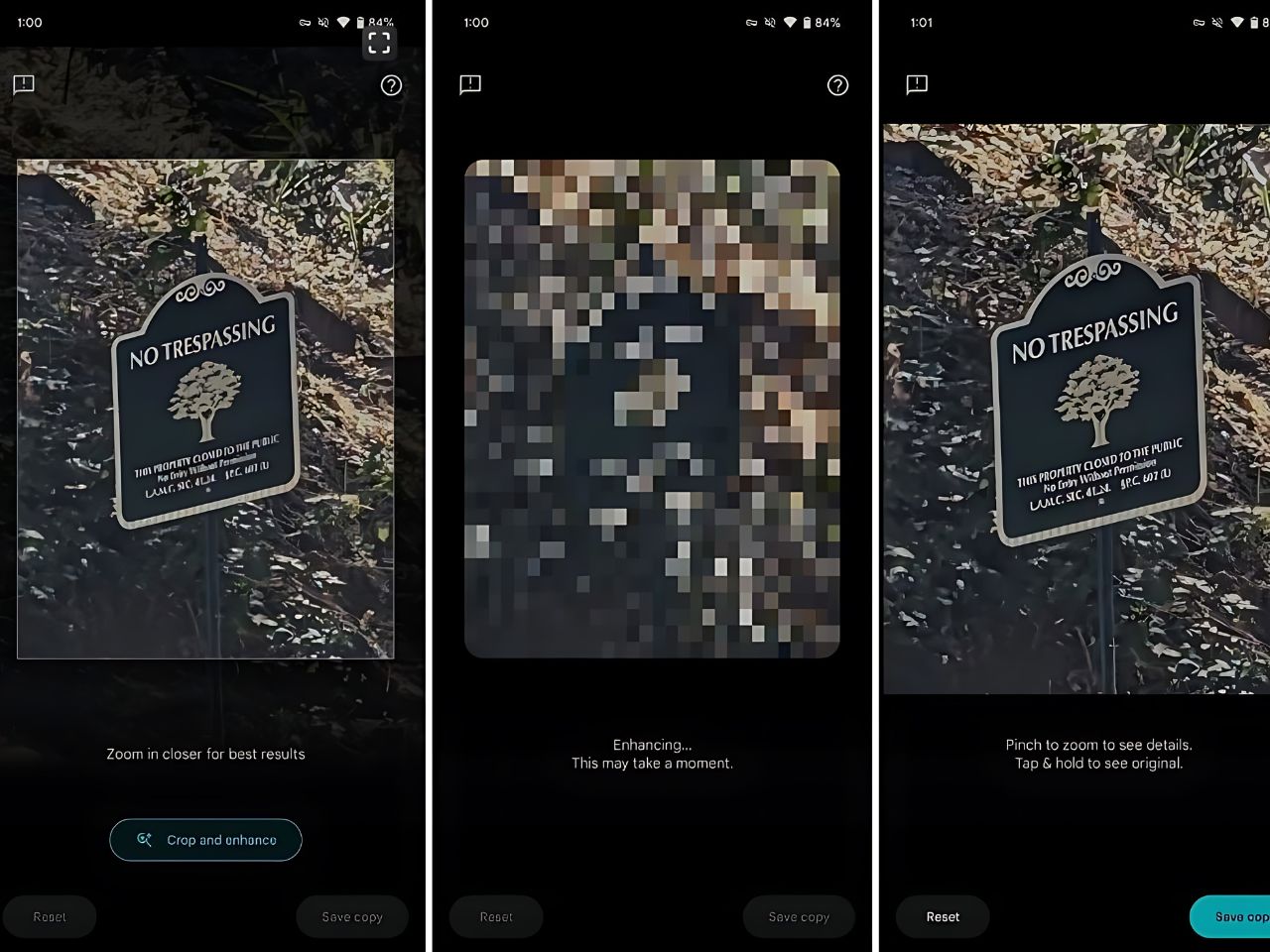 Il processo di miglioramento viene effettuato in tempo reale sul dispositivo, con tanto di animazione che “mostra” l’enhance in progess proprio come in un film. I risultati sono spesso più che buoni, anche se Google stessa sottolinea che: “è nelle sue fasi iniziali e potrebbe generare risultati inaspettati o imprecisi”.